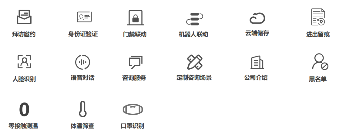 ★ 接待咨询:提供人员接待和问答咨询的服务。通过人脸识别、语义识别和语音合成等技术,为人员提供特定的接待和智能回答服务。