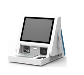睿盾台式智能访客一体机V4,外形简洁、时尚;采用钣金机身,表面喷漆处理;内置Mini ITX工控机,主屏采用17英寸十点电容触摸显示屏,副屏采用15英寸液晶显示屏,集成了二代身份证阅读器、凭条打印机、人像摄像头、证件扫描仪、射频读卡器、二维码扫描仪、电话语音盒以及话机等功能部件;设备集成度高,功能全面,适应性强。