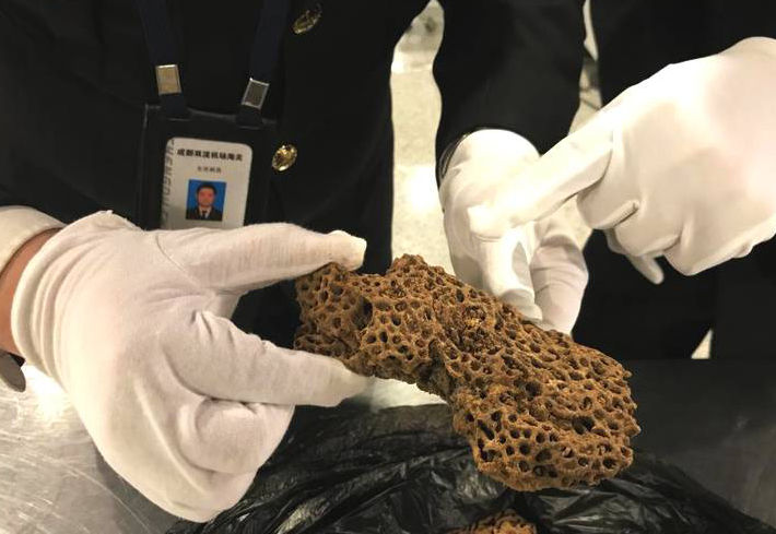 该男子表示,蚂蚁巢穴为他在非洲埃塞俄比亚地区自行挖掘并携带回国的,听说这种金蚂蚁有较强药用效果,准备用来泡酒自用。(转自凤凰网)
